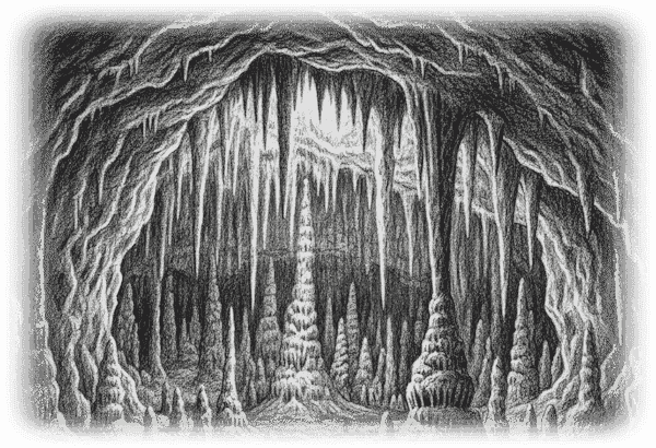 Half an hour later, Dorn stood in the center of a large cavern that is riddled with stalagtites and stalagmites, some of which joined to form eerily flowing stone pillars. He held a torch aloft. He only raised his voice a little, but his words carried well in the echoing chamber. "You may as well come on out. I saw you entering Arden's Mouth, and I know you're seeking me. Let us therefore palaver. There is one of me and three of you, and as you can see my sword is sheathed."