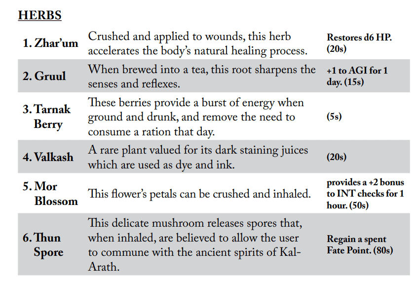 Illness! The character has acquired some long-term illness from their revels, whether a parasite from street food, a sexually transmitted disease, or an allergic reaction. The effect should be mild but real. Examples might include needing to eat double rations (for a parasite) or a 1 in 6 chance each session of fevers giving a –1 on all rolls (disease). The cure will usually require an adventure to locate the necessary elements of the cure (rare salts, curative springs, etc).