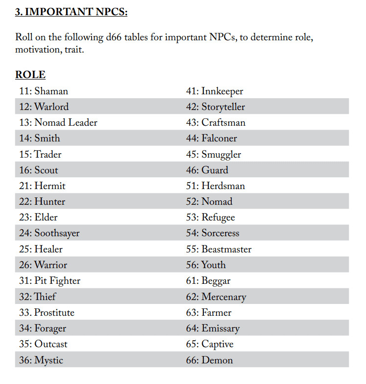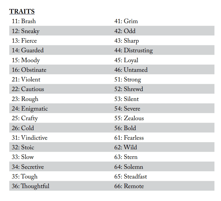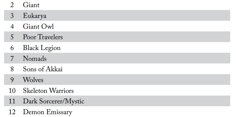 | <7 | A little rusty. Pick one: +1 to hit, +1 to damage, –1 AC (melee) or +10 ft range (missile) until the next downtime. |