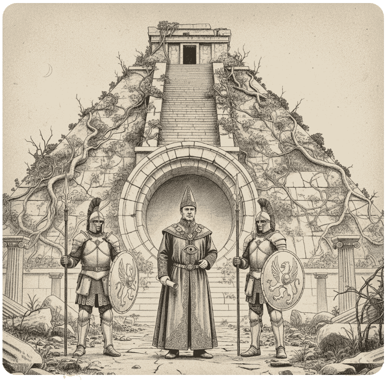 The Inscription: Faded but still legible in the lintel above the door is a line of Middle Thothian script. It reads: "Maintenance and Logistics – Authorized Custodians Only. Silence is the Handmaid of Precision."